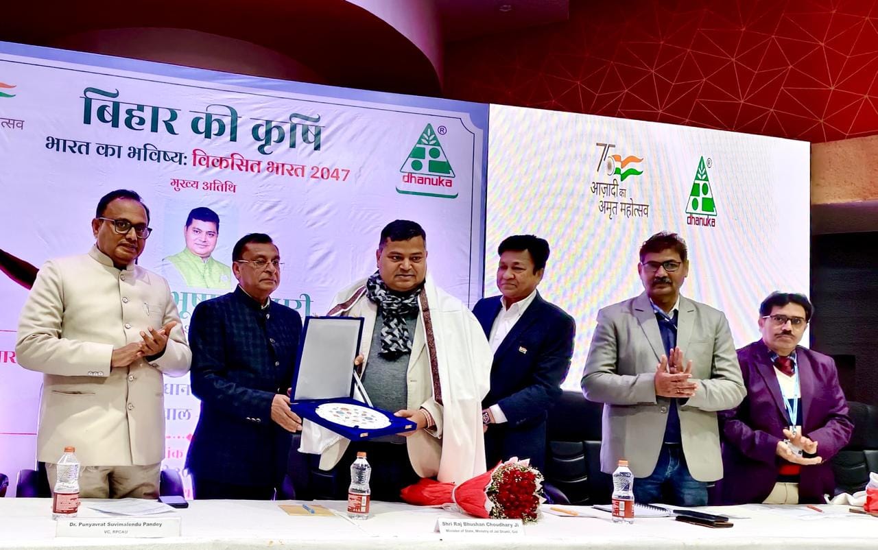 धानुका एग्रीटेक लिमिटेड द्वारा “बिहार की कृषि, भारत का भविष्य – विकसित भारत 2047” विषय पर किसान सम्मेलन का भव्य आयोजन 11 जनवरी 2026 को होटल अतिथि, रामदयालु नगर, मुज़फ्फरपुर में किया गया. यह सम्मेलन भारत सरकार के जल शक्ति मंत्रालय के माननीय राज्य मंत्री राज भूषण चौधरी के मुख्य आतिथ्य में संपन्न हुआ.